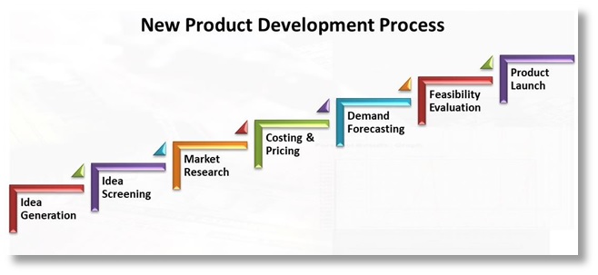 It is the process of taking a product or service from conception to market. The process sets out a series of stages that new products typically go through, beginning with idea generation, and ending with the product's introduction to the market. Occasionally, some of the stages overlap or vary depending on the nature of the business.